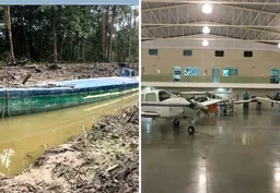 Ao desembarcarem, os policiais encontraram uma mulher e identificaram áreas de terra revirada no lote vizinho. Durante a varredura, localizaram dois rádios comunicadores e 165 gramas de substância análoga à maconha escondidos sob a terra.